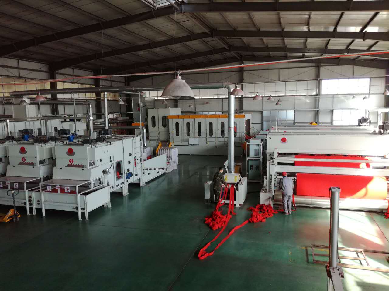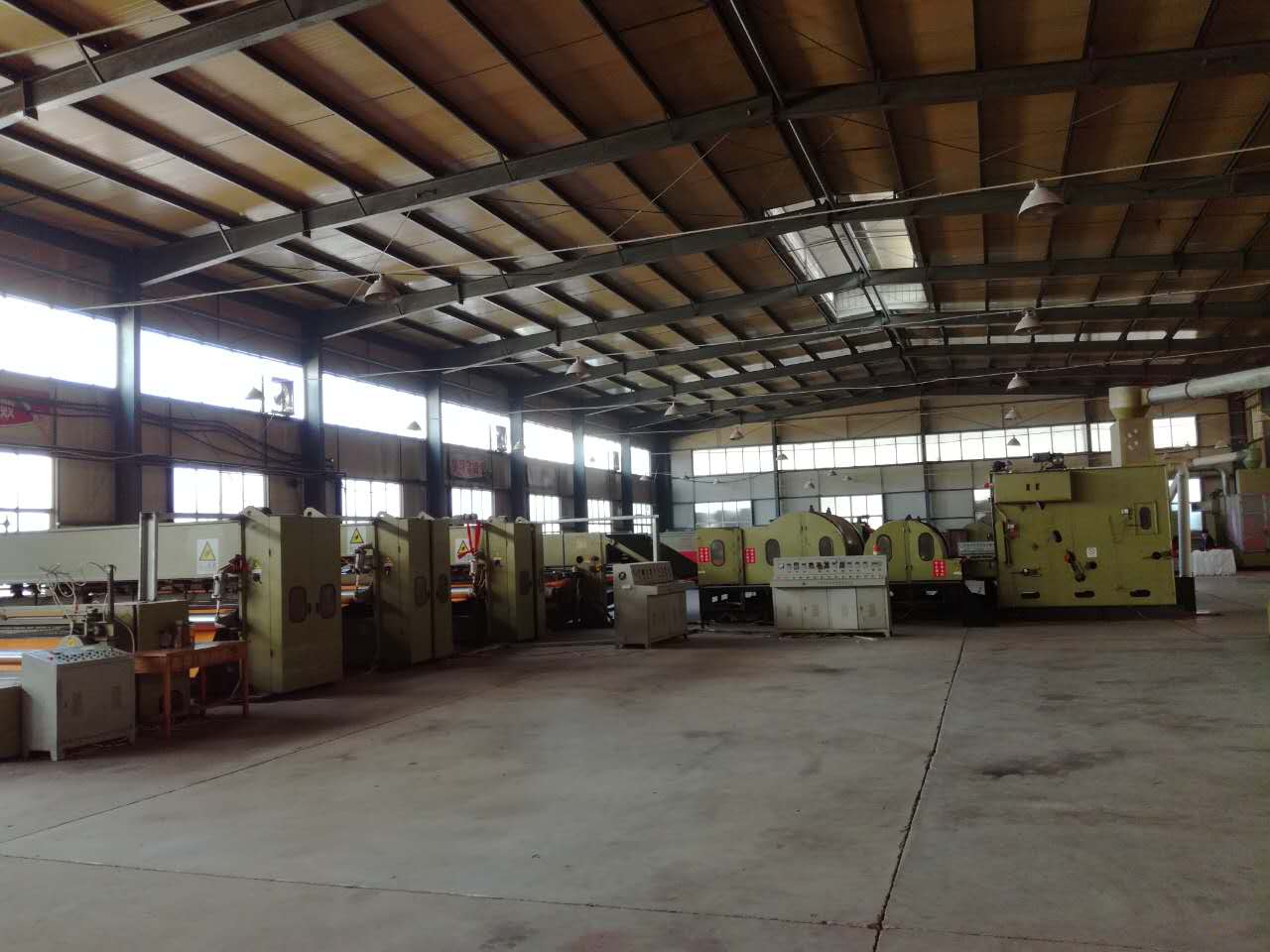 公司總投資1億余元,首期工程已完成投資3000萬元,F已建設標準廠房15000余平方米、引進多條無紡布生產線。其中,針刺無紡線4條、起絨機兩臺、電腦提花機1臺、條紋機1臺、地毯整理烘干定型線兩套。